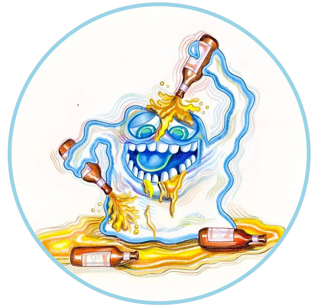 whimsy and melancholy. Depicted as a spectral pint glass with
